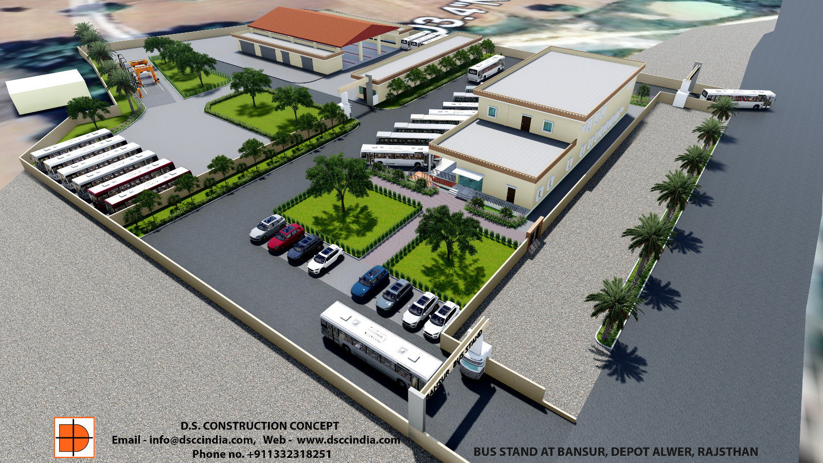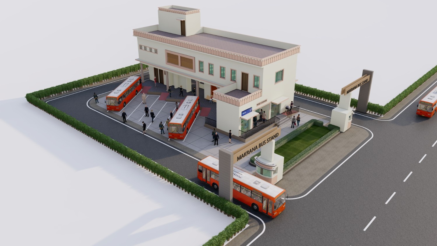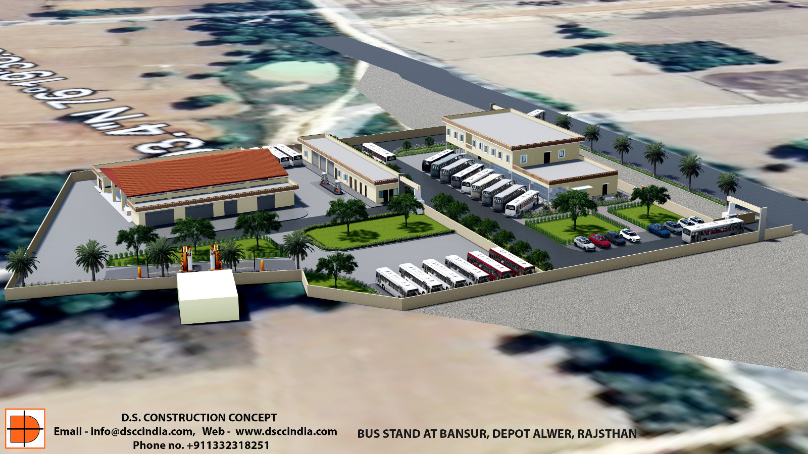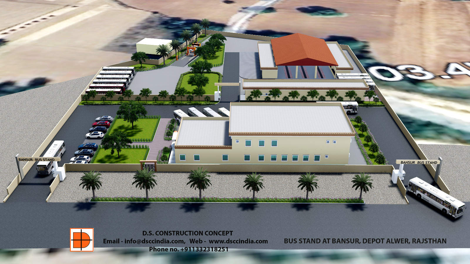 Total built-up area 2345 Sq. Mt (G+1) RCC Building with Bus stand, car parking, shopping area and public utilities like Landscape cafeteria, toilets, waiting areas etc.