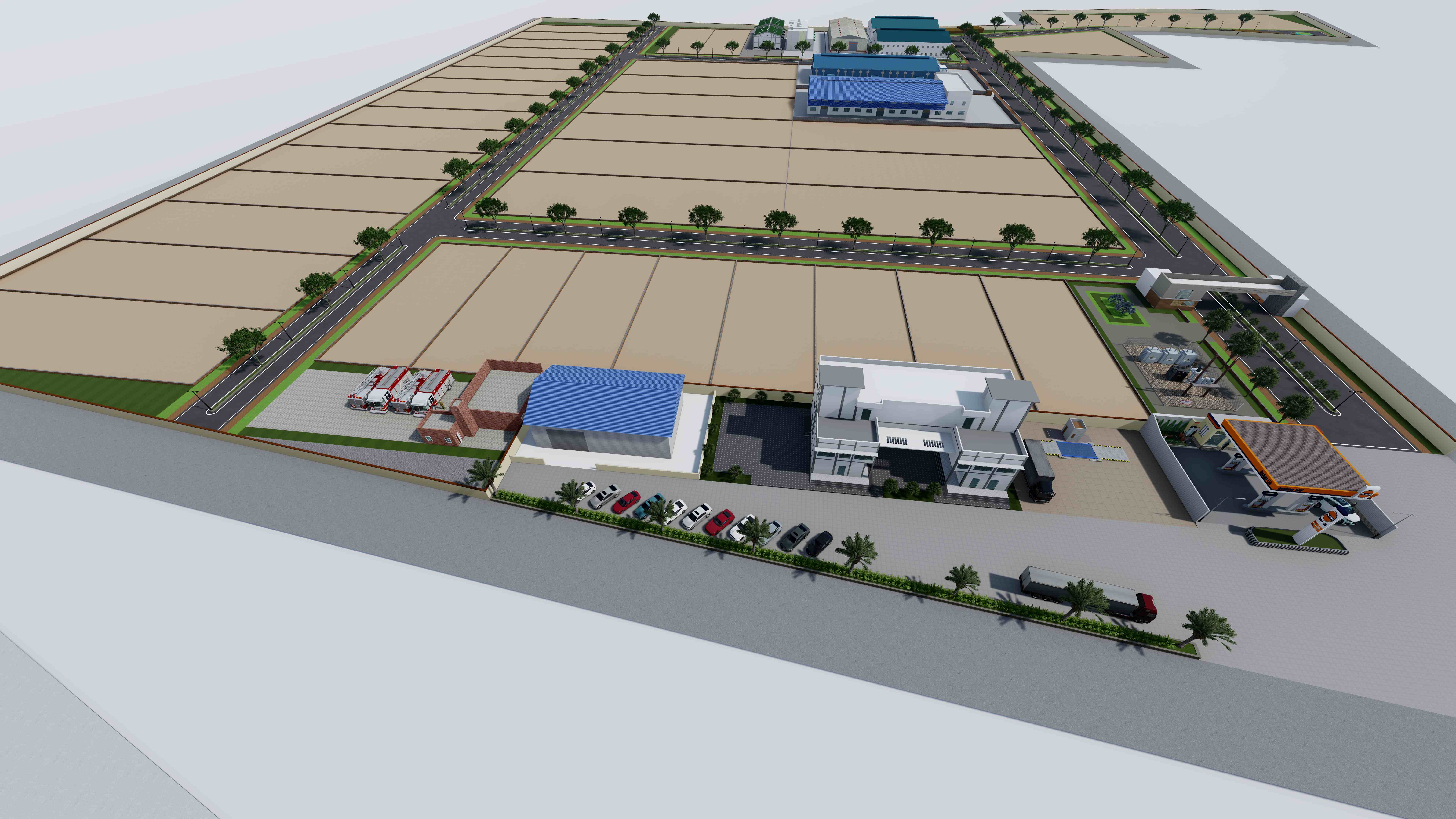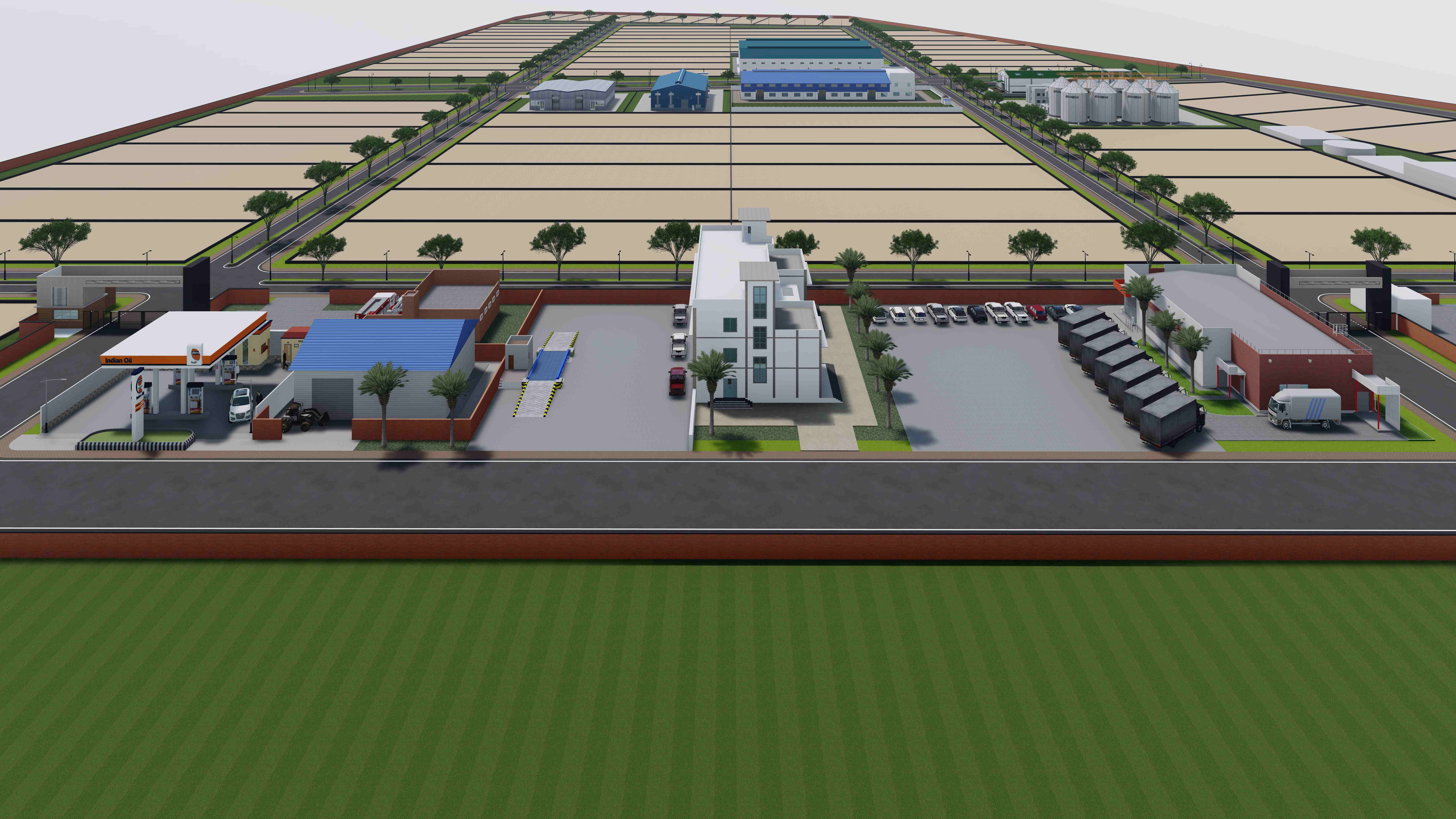 Total site area 603 Acer and Built-up area 145650 Sq. mt. G+2 RCC Frame Structures with industrial Estate development or Mega Food Park and Agro-Processing clusters with various establishment at all sites including weigh bridge, site boundary, Admin block with lab and training areas, Commercial/convenient shopping blocks, Warehouses, Silos, Grading and sortex, Workshop, Fire station, Fuel station are all required site development and Bul Services.