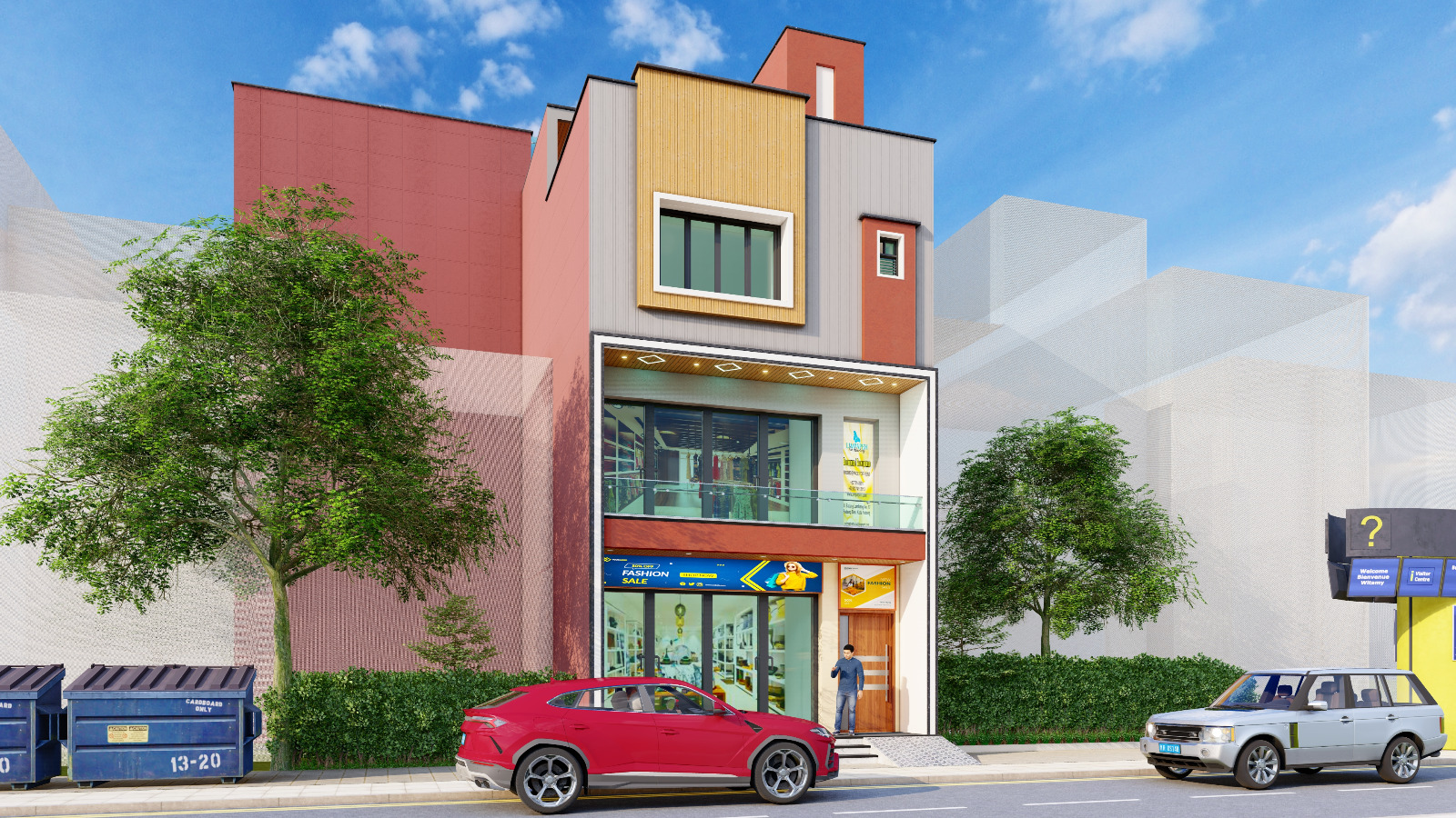 A mixed-use building designed to accommodate multiple functions within a single development. The facility includes a conference hall suitable for meetings, seminars, and events, supported by ancillary spaces such as pre-function areas and service rooms. Public amenities include well-planned male, female, and accessible toilet facilities for user convenience